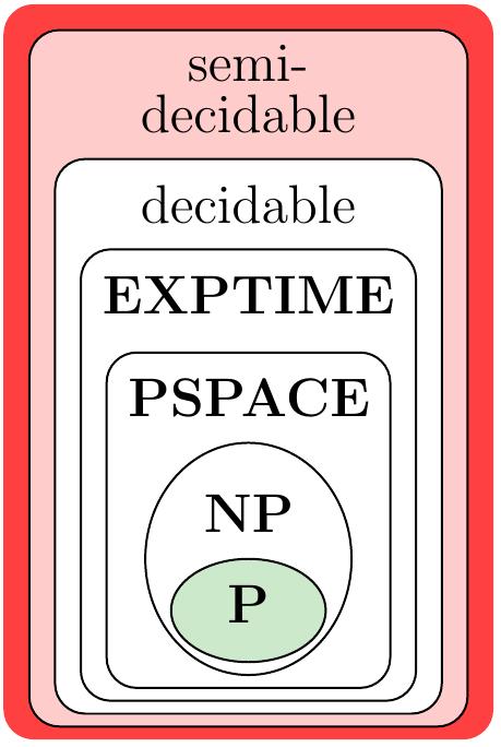 In computational complexity theory, the set of decidable problems can be divided in many smaller complexity classes: