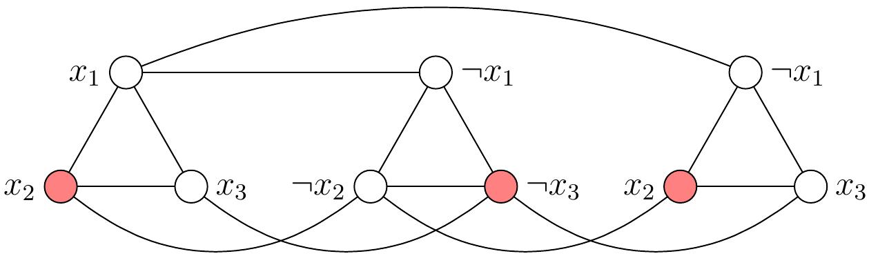 First note that \( S’ \) contains either \( v_i \) or \( v’_i \) (but not both) for each variable \( x_i \) as the digit \( \hat x_i = 1 \) in \( t_{\phi} \).