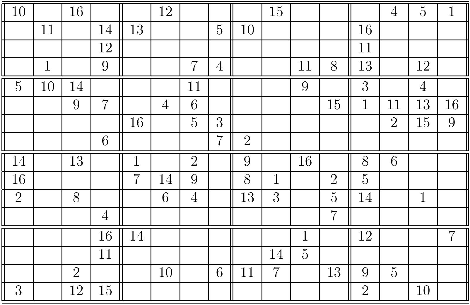 Let us apply the above described approach to Sudoku solving. Our goal is to use the sophisticated CNF SAT solvers available. Thus, given an \( n \times n \) partially filled Sudoku grid, we want to make a propositional formula \( \phi \) such that