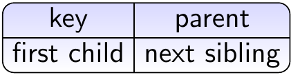 As a concrete example, in the section Priority queues with binary heaps, trees of certain type will be represented with arrays so that the child/parent information is not represented explicitly at all. Similarly, in the section Disjoint-sets with the union-find data structure only the parent information is attached to each node.