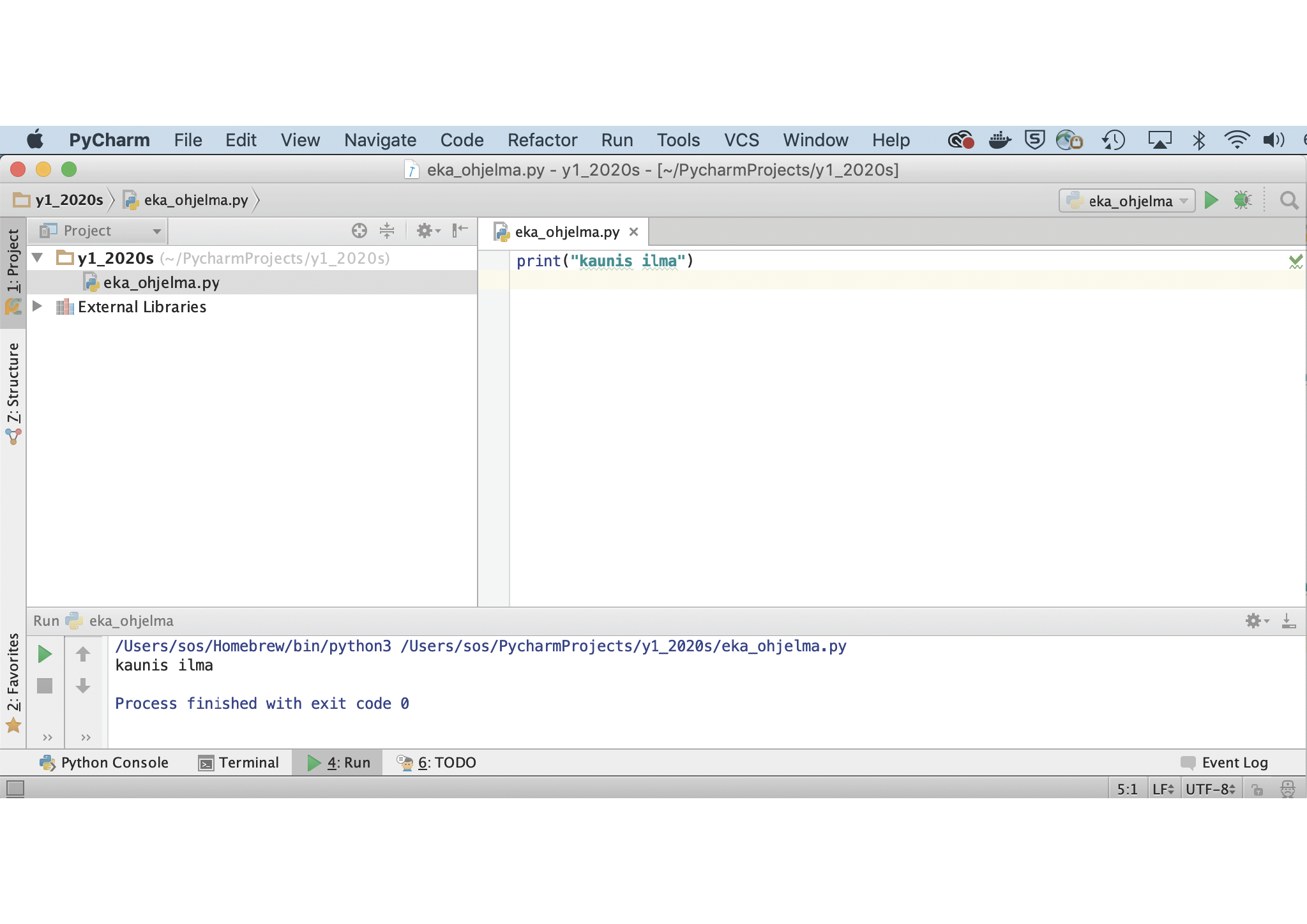Kun ohjelma on kirjoitettu valmiiksi, eikä PyCharm löydä siitä enää
