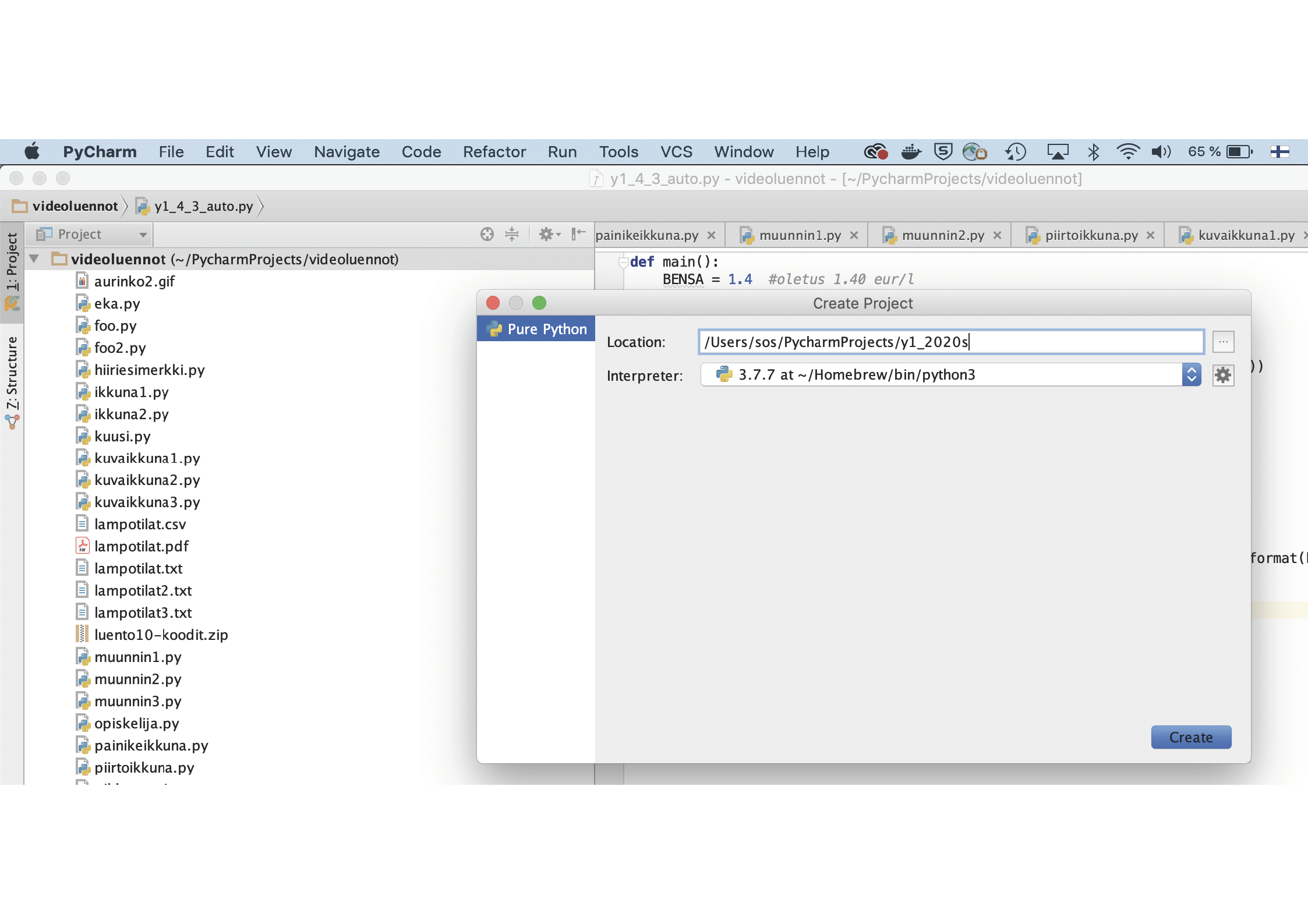 virheitä, ohjelman voi ensin tallentaa (tosin PyCharm taitaa tehdä tämän