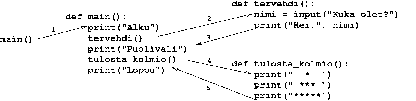 tulostuskäsky. Ohjelman osien suoritusjärjestystä on kuvattu vielä alla